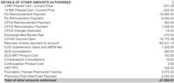 The ‘details of other amounts authorised’ section includes various other payments a pharmacy contractor may be entitled to;