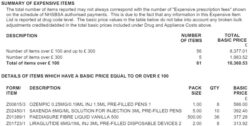 This section shows the number and value of expensive items which were dispensed during the month, which have an item value of £100 or more. These values are important as fluctuations in the number or value of expensive items dispensed can have a significant impact on the average item value in a given month, and consequently the advance paid for the following month.
