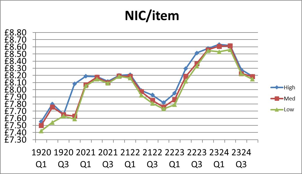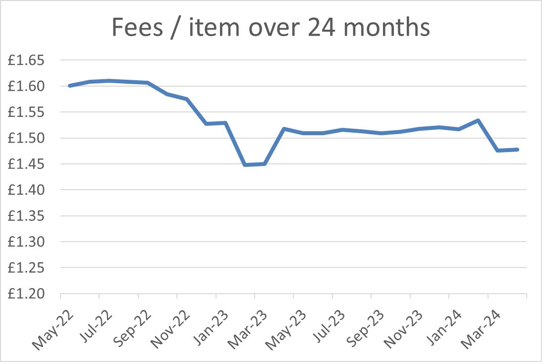 A. Community Pharmacy England produce monthly NHS remuneration statistics, which contain information on the monthly average item value.