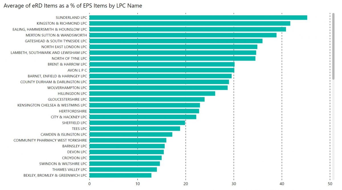 To illustrate eRD statistics across LPC areas. The diagram below shows eRD spread. 45% of all Sunderland LPC EPS items were eRD